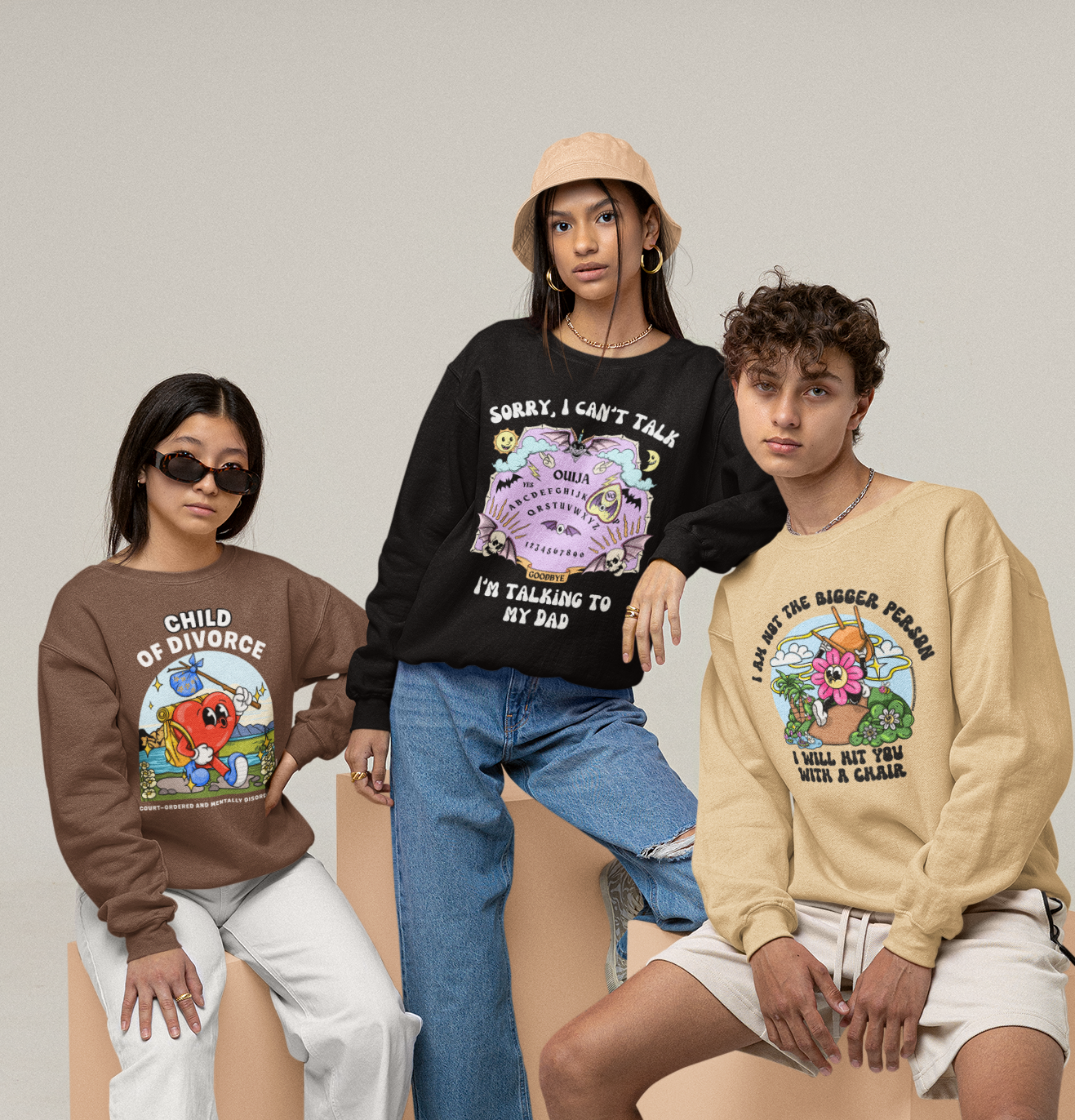 We specialize in clothing and designs that allow you to express yourself without saying a word. From dark humor, to mental health awareness, to surviving family trauma, to pop culture; we're not for everyone, but we're definitely for you!